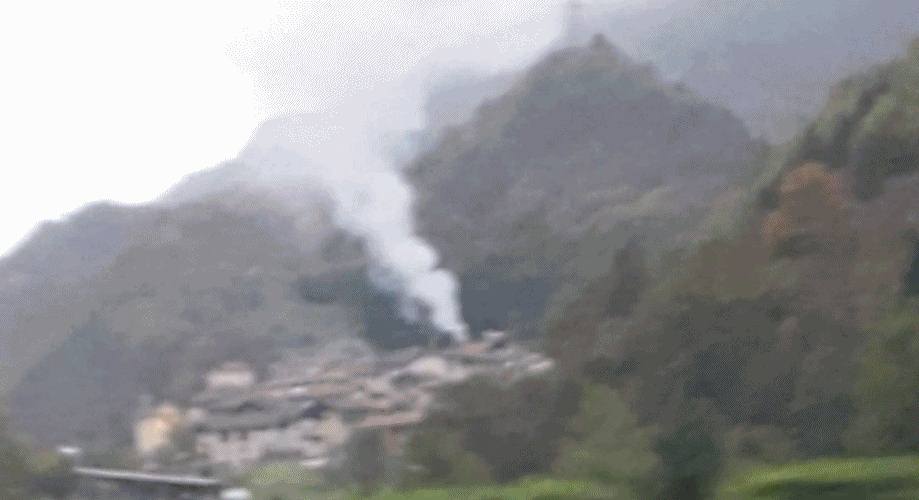 Una canna fumaria in fiamme ieri a Pieve di Bono, con fumo che si vedeva da lontano nell'intera valle del Chiese.