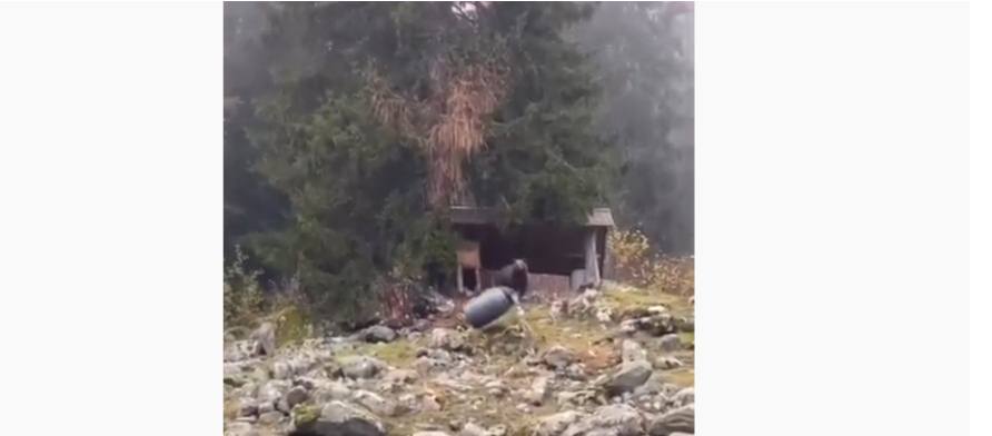 Lo ha pubblicato questa sera sulla propria bacheca facebook e sta diventando virale. L'orso che lancia un bidone verso colui che sta riprendendo la scena. Non si era amai visto.