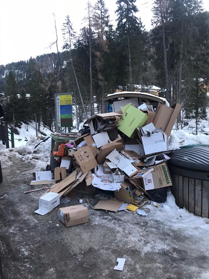 «Mi ritengo una persona tranquilla e pacata che alle volte fa anche degli errori (amministrativi e non). Sbagliare aiuta a crescere. Credo che la foto che ho pubblicato non sia dovuta all'errore di qualcuno. Sono anni che si predica della raccolta dei rifiuti, serate pubbliche dedicate, giornate ecologiche, lezioni all'interno delle scuole, . . . Arrivare a questo punto è un semplice indice di maleducazione, inciviltà e mancato rispetto per il nostro territorio. Sono veramente deluso da NOI. Viviamo in un paese stupendo che è invidiato da milioni di persone e noi lo trattiamo così. Mi vergogno. Sento lamentele tutti i giorni da parte di residenti sulla pulizia urbana come se fosse colpa delle amministrazioni, le ascolto volentieri e cerchiamo di metterci rimedio il più velocemente possibile ma di fronte alla maleducazione nulla si può. Come dicevo l'altro giorno a una persona di Campiglio, dovremmo togliere tutte le isole ecologiche o obbligare le famiglie ad andare al centro raccolta materiali più vicino. Spero che la polizia locale faccia un'indagine e raggiunga il/i colpevoli di questa situazione pessima della nostra località». questo lo sfogo dell'Assessore Luca Vidi in seguito dell'ennesimo episodio di abbandono dei rifiuti nelle isole ecologiche di Madonna di Campiglio. La scorsa settimana un'analoga situazione aveva portato l'amministrazione comunale a "chiudere" un'isola ecologica, quella di Via Sarca.